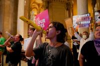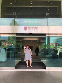 Anna exiting Stanford Medical Center to be discharged home to Iowa.